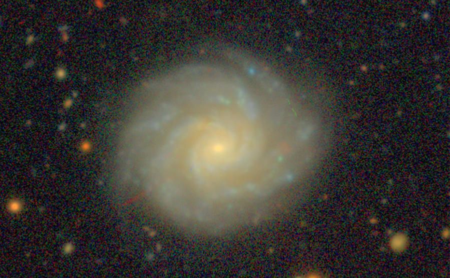 渦巻銀河を上から見ています。渦巻の腕が点対称に見えています。